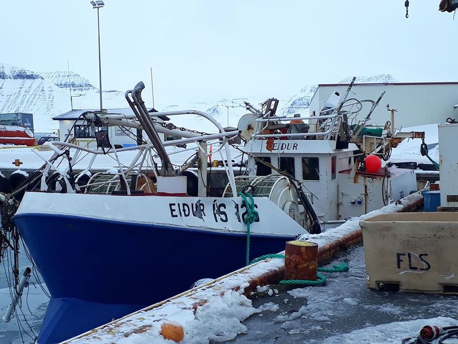 the blue steelboat name Eiður ÍS is much damage.